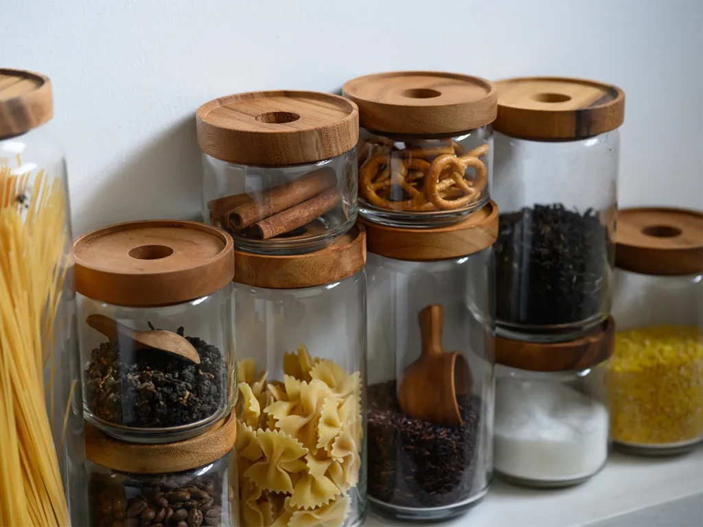 道具としての実用性も妥協していません。コーヒー豆やスパイス、パスタなどの鮮度をしっかり守りながら、中身を美しく引き立てます 。中身が見えることで「あとどれくらい残っているか」が一目で分かり、買い忘れを防げるという機能的なメリットも。雑多になりがちな乾物や調味料も、このキャニスターに詰め替えて並べるだけで、キッチンに統一感とリズムが生まれます。
