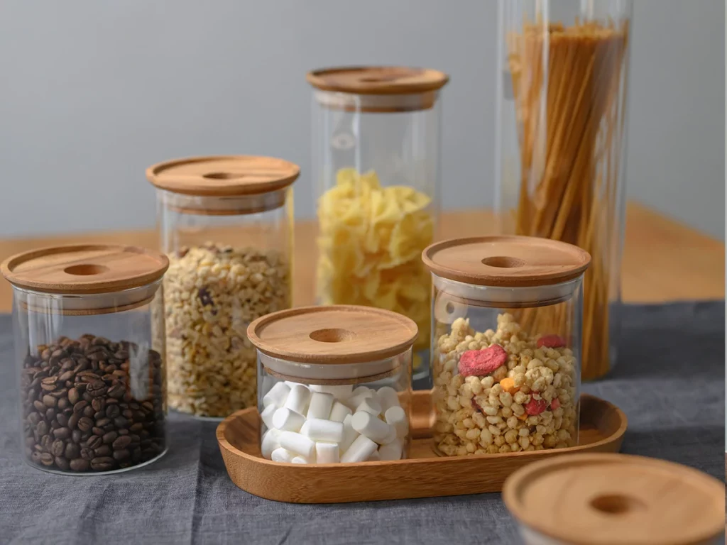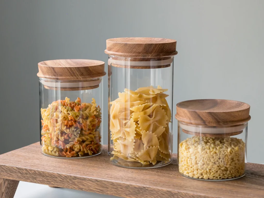 私たちのキャニスターの最大の魅力は、クリアなガラスと、温かみのある天然木の蓋が織りなす完璧な調和にあります 。蓋に使用されているのは、職人が一点ずつ丁寧に削り出した無垢の木材です 。大量生産品にはない、指先にしっとりと馴染む滑らかな曲線や、一点ごとに異なる豊かな木目は、使う人の心に心地よい安らぎを与えてくれます。