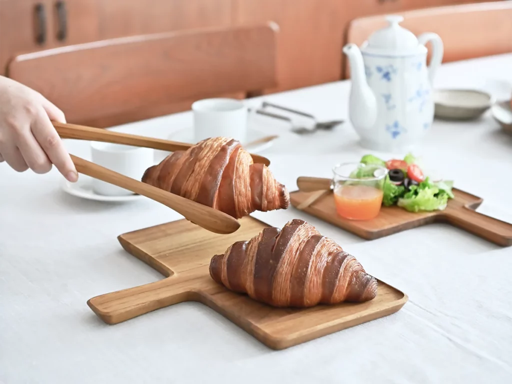 焼きたてのクロワッサンを木のトングでそっと取り分ける。
